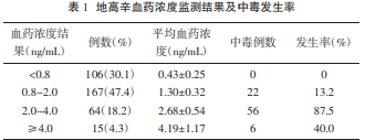 3.2 地高辛血藥濃度與中毒癥狀情況