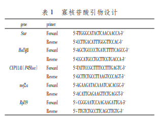StAR/P450scc /3βHSD、 MEF2A mRNA 的表達(dá) 應(yīng)用引物設(shè)計軟件設(shè)計上述基因引物( 如表 1) ,BLAST 驗證其有效性,送至生物公司合成,將 提取的細(xì)胞 RNA 逆轉(zhuǎn)錄成 cDNA,qRT-PCR 檢測 各組基因表達(dá)量。