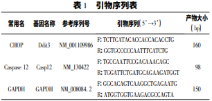 Lactacystin、阿撲嗎啡,購自美國 Sigma 公司; TriZol( 批號 14105) ,購自 Invirogen 公司; 逆轉錄試劑 盒( 批號 0051509) ,購自 New England Biolabs; 擴增試劑盒 ( 批號 0006231745) ,購自 Agilent; 蛋白質裂解液、一抗稀釋 液、ECL 化學發(fā)光試劑,購自碧云天生物技術研究所; 蛋白 測定試劑盒,購自鼎國生物技術有限公司; 兔抗人 β - Actin 多克隆抗體,購自 Santa Cruz; 羊抗兔 HRP - IgG,購自 Santa Cruz; anti - CHOP、anti - Caspase12,購自 cell signal 公司。